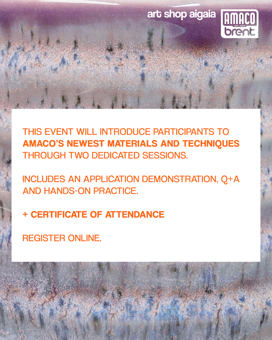 This hands-on event will introduce participants to AMACO’s newest materials and techniques through two dedicated sessions. Participants may register for their first-choice session and sign up for the second one if space allows.